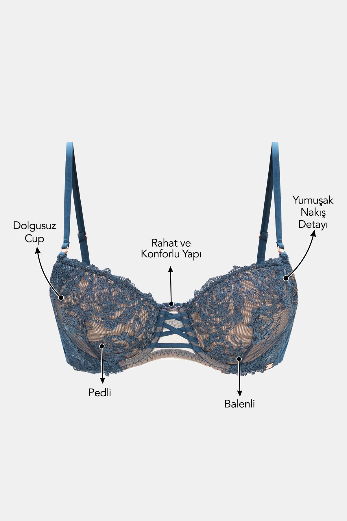 1. Doğal ve Zarif Siluet Dolgusuz form, göğsün kendi şeklini korumasına yardımcı olur. Nakışlı tasarım ürüne sofistike bir şıklık ve ince bir duruş kazandırır.