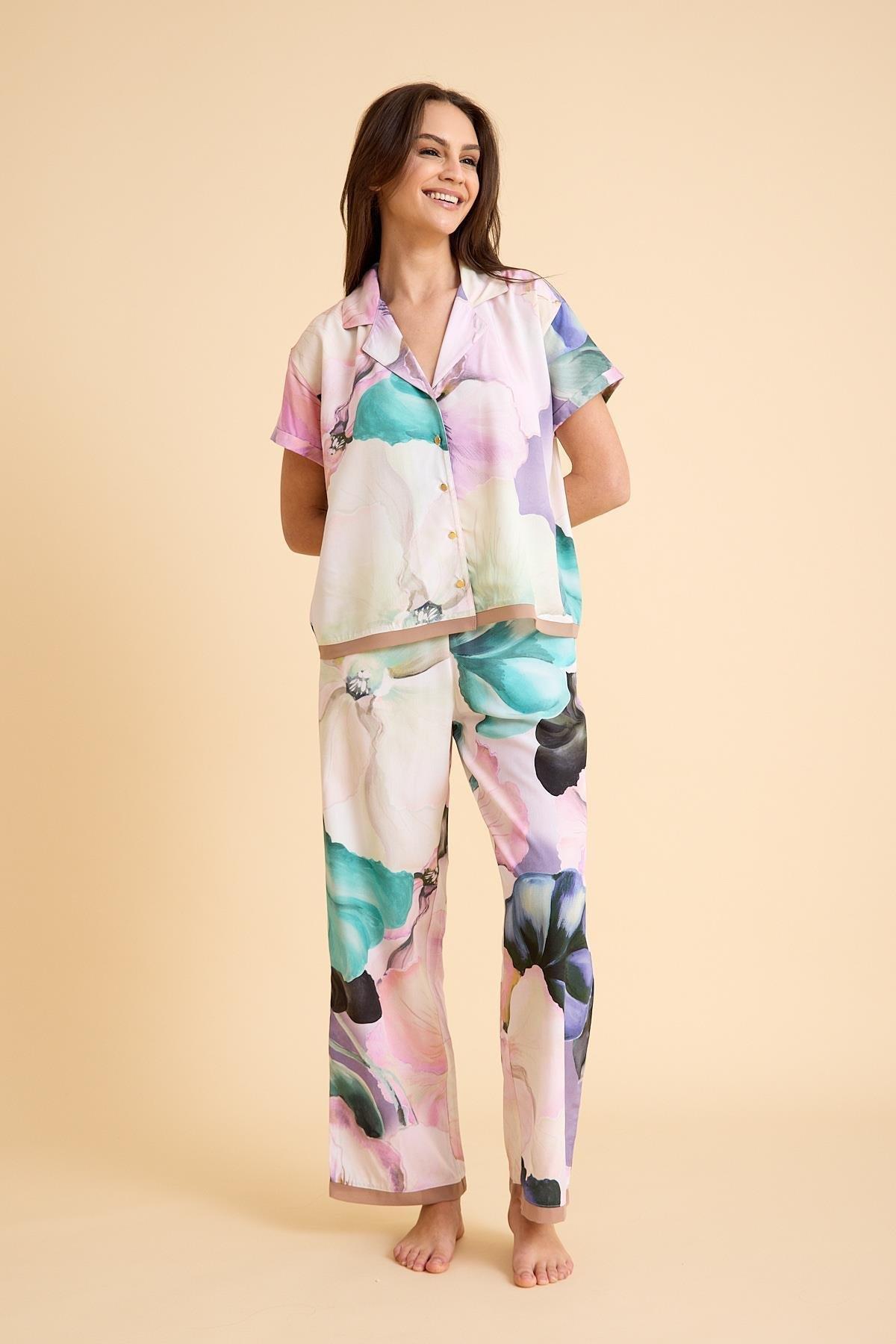 Paradise Çiçek Desenli Viskon Düğmeli İpeksi Pijama Takım (AH25500)