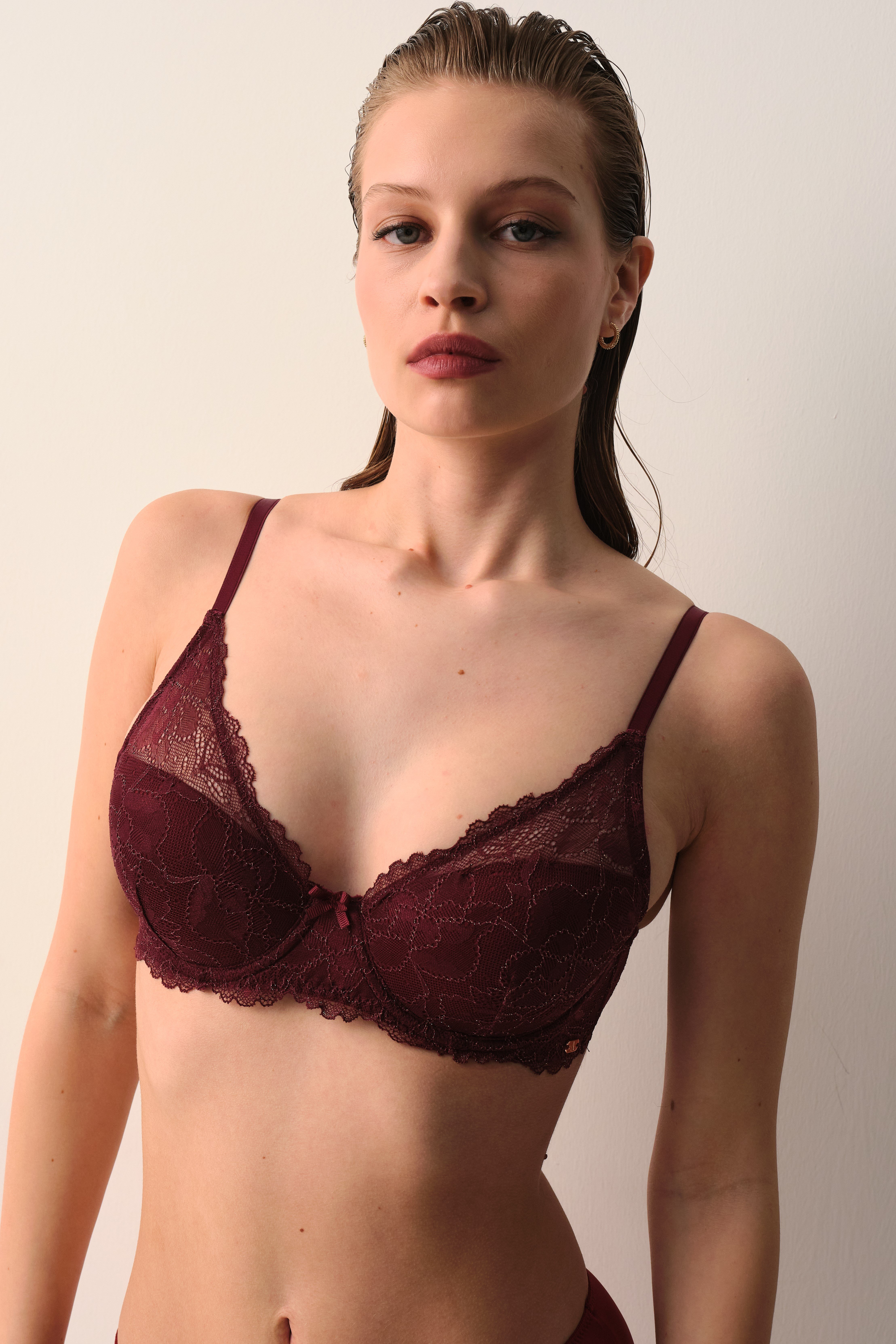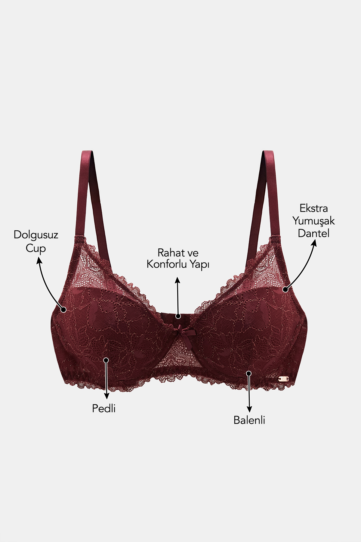 Roma Siyah Dantelli Sütyen- Balenli Dolgusuz Roma Bordo Dantelli Sütyen- Balenli Dolgusuz